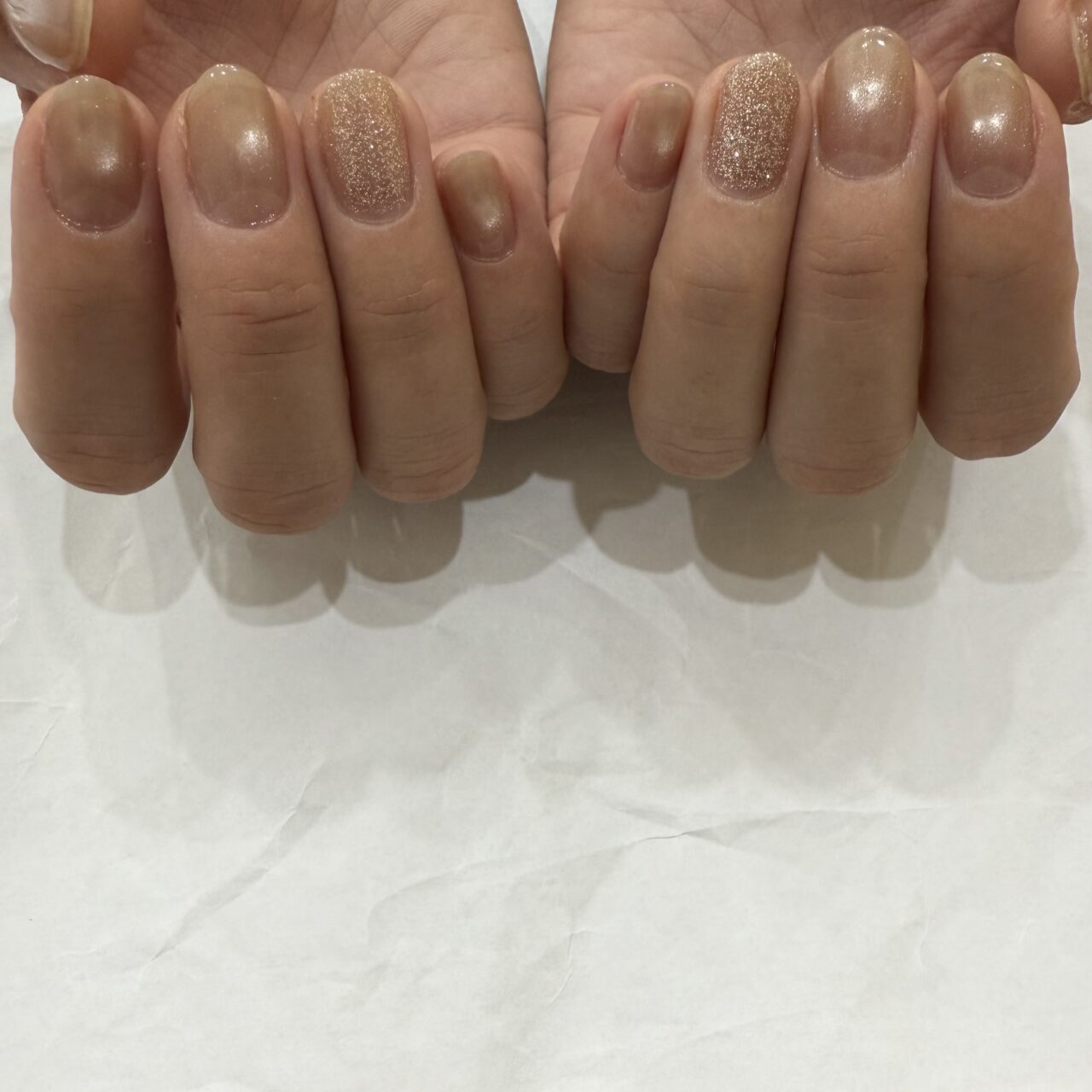 上品で控えめなネイルは、仕事や家事、育児中、お風呂の時間など